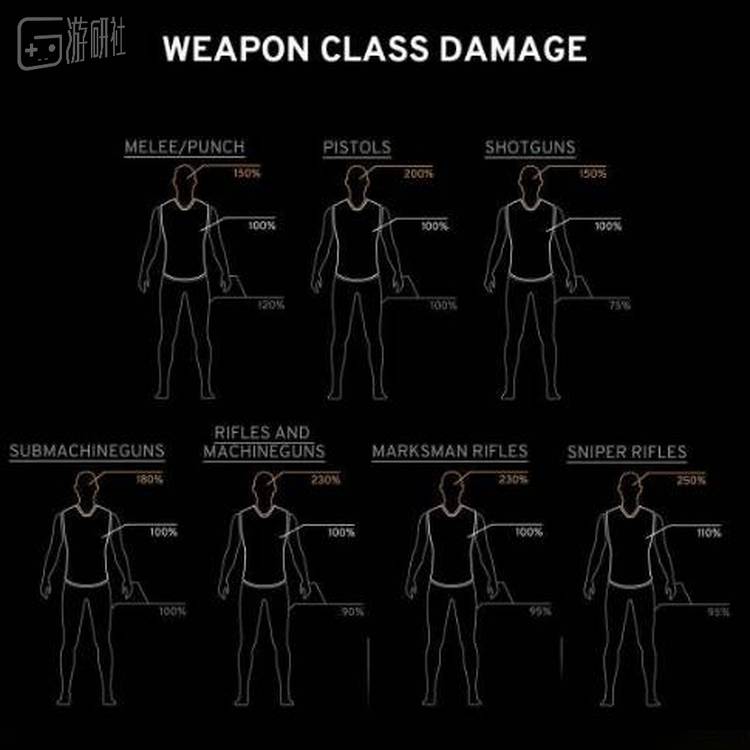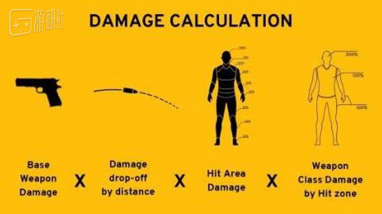伤害计算方式也进行了重新设计,这让游戏看起来更加真实。现在子弹打在敌人身上造成的伤害要经过一系列的复杂计算,相当于武器基本伤害*距离衰减系数*伤害区域系数*武器种类伤害系数。