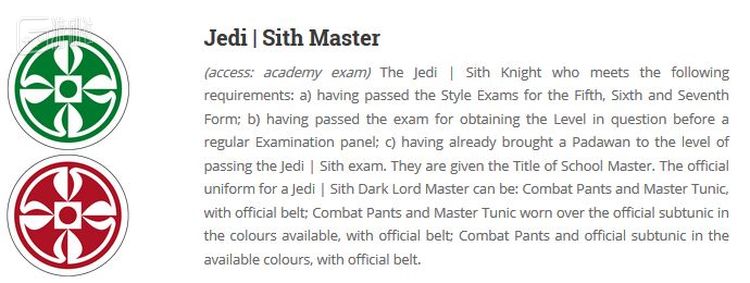 通过光剑学院的课程和比赛,参与者可以获得各种三种积分。LudoSport协会根据积分为学员评出各种阶级、荣誉和称号。就像电影中一样,LudoSport的学员根据经验不同分为初学者、幼童、学徒、绝地/西斯、骑士、大师等六个阶级。通过刻苦锻炼提升阶级,让参与者收获很强的成就感。