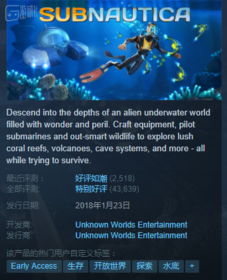 这款海洋生存题材的游戏早在2014年就进入了抢先体验阶段。在三年多漫长的等待里,《深海迷航》在获得了全球200多万Steam玩家93%的好评率,积累了超过4万条留言。