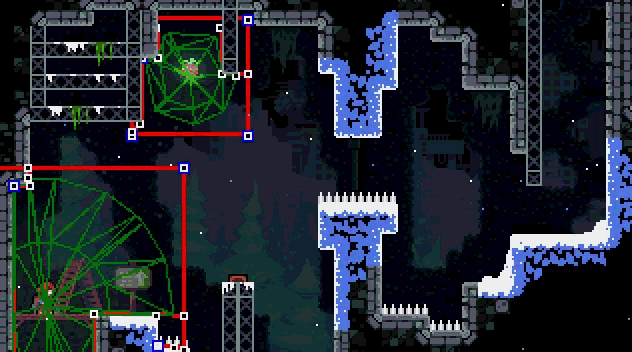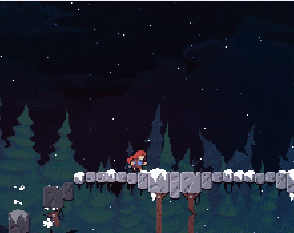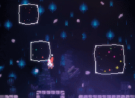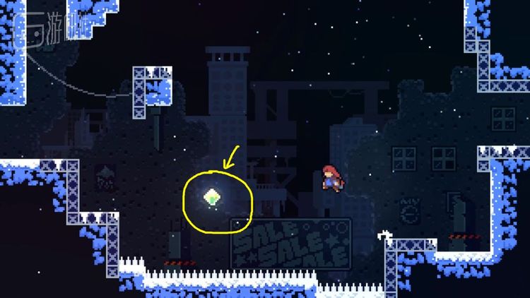 在游戏的早期阶段,当你对操作还完全懵懵懂懂的时候,就会遇到那个平台跳跃类游戏的常见元素—— 跳跃刷新点。这个词是我想出来的,因为似乎没有专有名词,但不算少见。玩家在空中碰触到“跳跃刷新点”的时候,会恢复在空中再次跳跃的能力(和落地再次跳起的效果相同),这样即便只能跳一次,也能实现二段跳了。