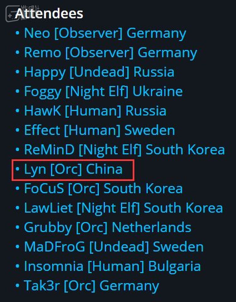 即使Lyn的国籍错误问题得到更正,另一个问题又冒了出来,暴雪这个War3邀请赛,完全没邀请中国选手。