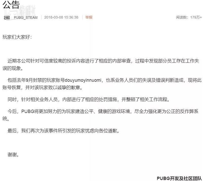 至此,回顾半年前魔音糯米的那句“蓝洞中国区负责人金秀焕有问题”,蓝洞官方说的“魔音糯米被误封的概率为0.001%”,再加上《绝地求生》被诟病无数的运营问题,蓝洞这种“作坊式运营”的企业形象,简直熠熠生辉了。