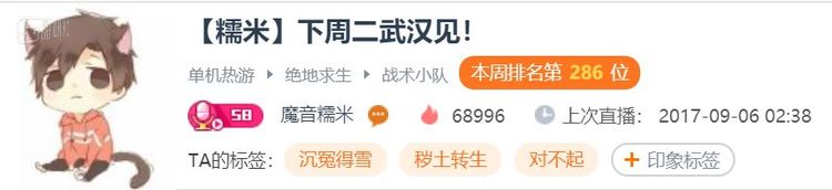 在经历了那段封号风波之后,魔音糯米来到了另一家直播平台。