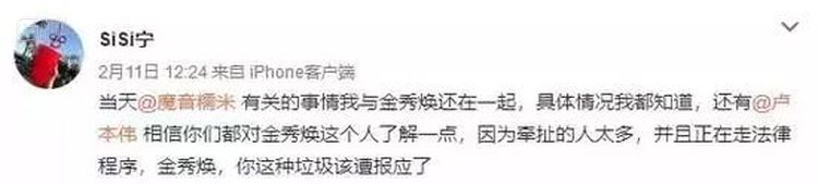 除此之外,“SiSi宁”还爆出不少金秀焕个人生活问题和聊天截图,但当时她还没有在微博说出之前提到的魔音糯米相关内容,但光那一句话就足以让人联想到之前魔音糯米的那一系列“戏精”操作。
