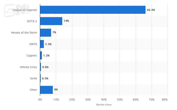 2013年初,拳头公司公布的《英雄联盟》中活跃玩家的数据中,月活跃人数为3200万,日活跃人数为1200万,而最大同时在线人数突破500万。这一年《LOL》冠军赛的观赛人数突破了3000万。 “MOBA”游戏的鼻祖,《DOTA》的二代也于同年7月9日上线,无数厂商纷纷开始做 “MOBA”游戏,挤破头想进入 “MOBA”游戏的市场,比如EA、Crytek、暴雪以及我们今天的主角华纳等等。