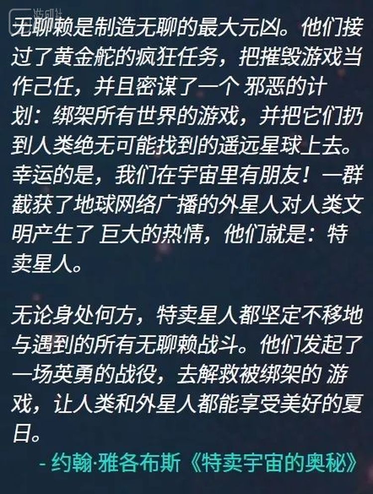 因为在今年的游戏背景中,外星人绑架了所有世界的游戏,并把它们扔到人类绝无可能找到的遥远星球上去。