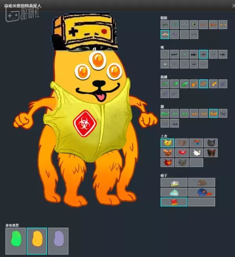 特卖星人形象可以自定义,比如你可以用主色调游研黄给角色搭配(好吧,帽子是我P的):