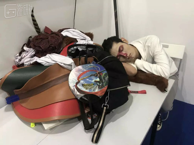 虽然工作人员有轮班,但长时间的站立和场馆内的高温对所有人都是种挑战。朱子豪的岗位最为辛苦,前来试玩的观众大多从没接触过怪猎,他必须从头讲解游戏操作,在游戏中盯好每个玩家不要掉队,在场馆的嘈杂中这样一轮下来早已口干舌燥。“每次轮班休息的时候我都在休息室睡一会,身体上倒是不怎么累,主要是精神高度紧张,时间长了会很疲劳。”