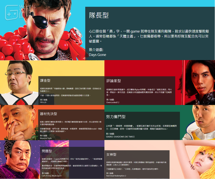 PlayStation香港官网还按照明星网红各自的特色,为他们做了归类。
