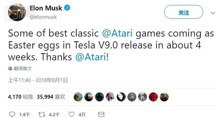 在此次9.0固件更新推送前一个月,马斯克曾专门在个人推特上预告过将有4款雅达利登上特斯拉汽车