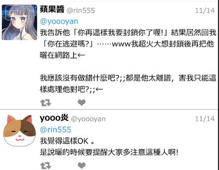 上图中的的“蘋果醬”是个专盗别人的图的网络画手。虽然她破绽露的明显,明眼人一看就知道,但是只要玩家装糊涂,怂恿她把质疑自己的网友挂出来,就能让“苹果酱”炎上。