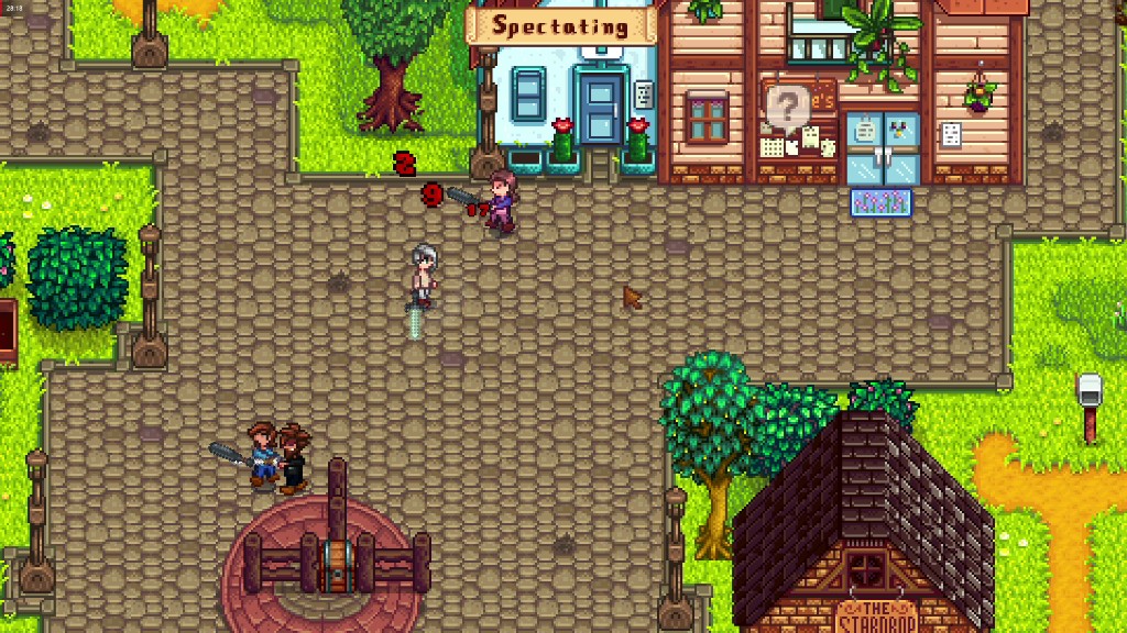跟传统的“吃鸡”游戏类似,一开始,玩家扮演的农夫会出现在星露谷地图各处,虽然不是空降或是什么的,但是位置仍然是随机的。受限于《星露谷物语》农场本身的大小,这样的地图对于一款吃鸡游戏来说显然是有些小了,所以作者一开始就在介绍中写道:“这个农场对于我们所有人来说都太小了。”