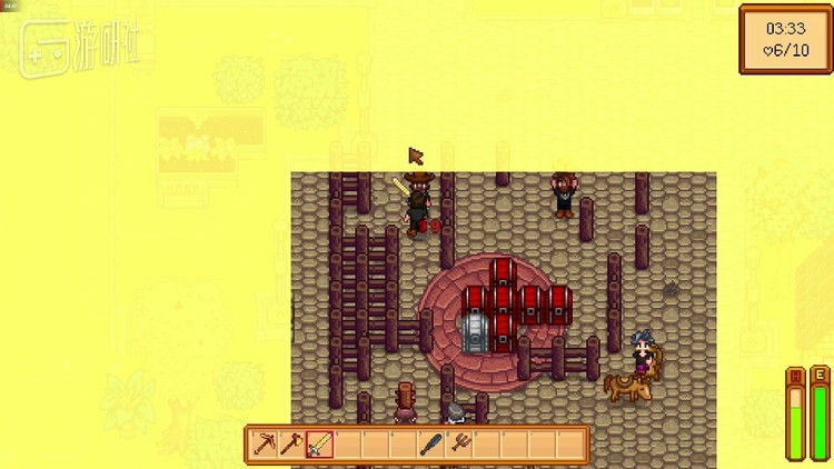 跟《堡垒之夜》类似,《星露谷物语》本来就可以砍树,还有建造玩法,所以你完全可以藏在草丛里偷袭敌人,或者是盖一组栅栏把自己围起来。如果敌人想过来用锄头搞你的话,只能先把栅栏劈开才行。