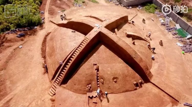 而这个和Xbox“撞车”的造型,也是在这次抢救性发掘中人为“做”出来的。时间紧,任务重,想一点点剥开土墩已不可能。因此,在考古人员们采用了“十字探方法”,把它隔成了四个部分,这样就可以在快速清理的同时,保留土壤分层的数据,便于进一步的研究。