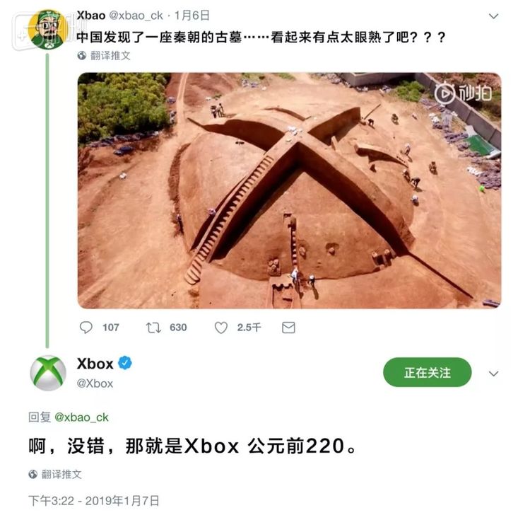也许是因为Xbox官方的回复更加引人注目,这条推特让很多朋友都因此以为这是一座秦朝的古墓。一时间,“秦始皇真是宅宅始祖,不仅有很多手办还有游戏机玩”的消息不胫而走。
