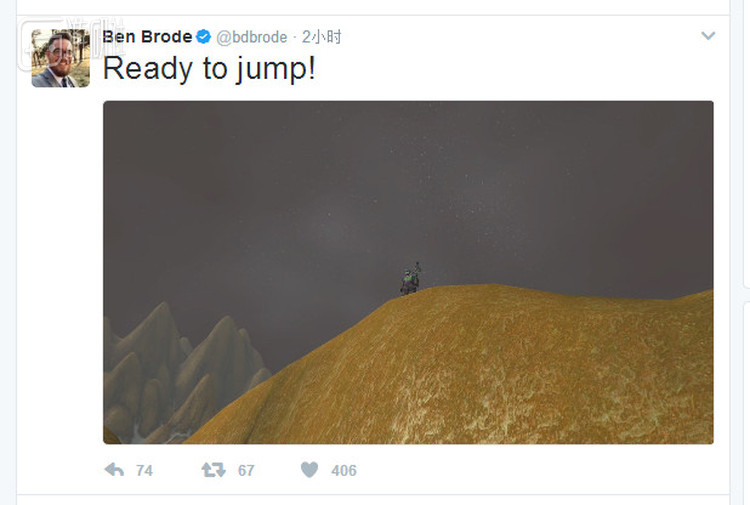 BB在推特发表的炉石安戈洛版本预告,他的魔兽世界角色站在安戈洛环形山地图边的山上