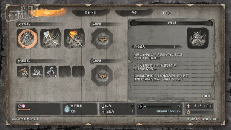《只狼》新加入的技能树也是一个大的区别,北尾先生向我具体介绍了一下它在游戏中的表现。