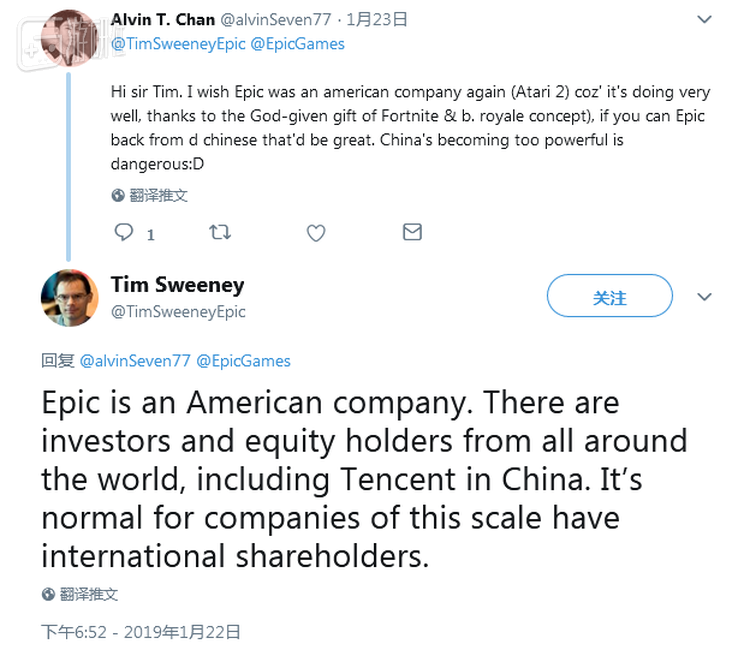 Epic其实已经做过类似的否认许多次了。“Epic是一家美国公司,”蒂姆·斯威尼在1月份的一条推特中就说。“它在世界各地都有投资者和股东,包括中国的腾讯。这种规模的公司有国际股东是很正常的事。”