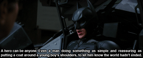 “英雄可以是任何一个人,哪怕只是做一个简简单单的动作,比如帮助一个无助的小男孩披上大衣,让他知道他的人生还没结束。”