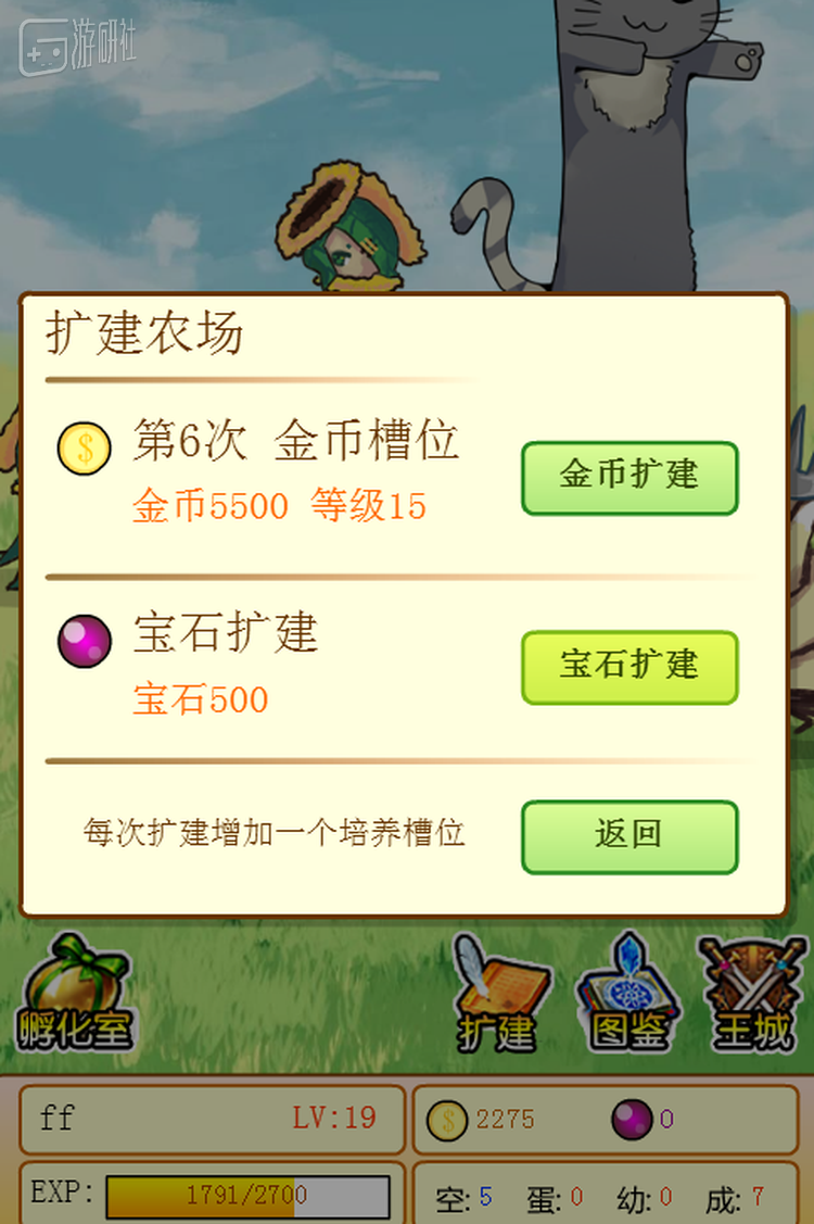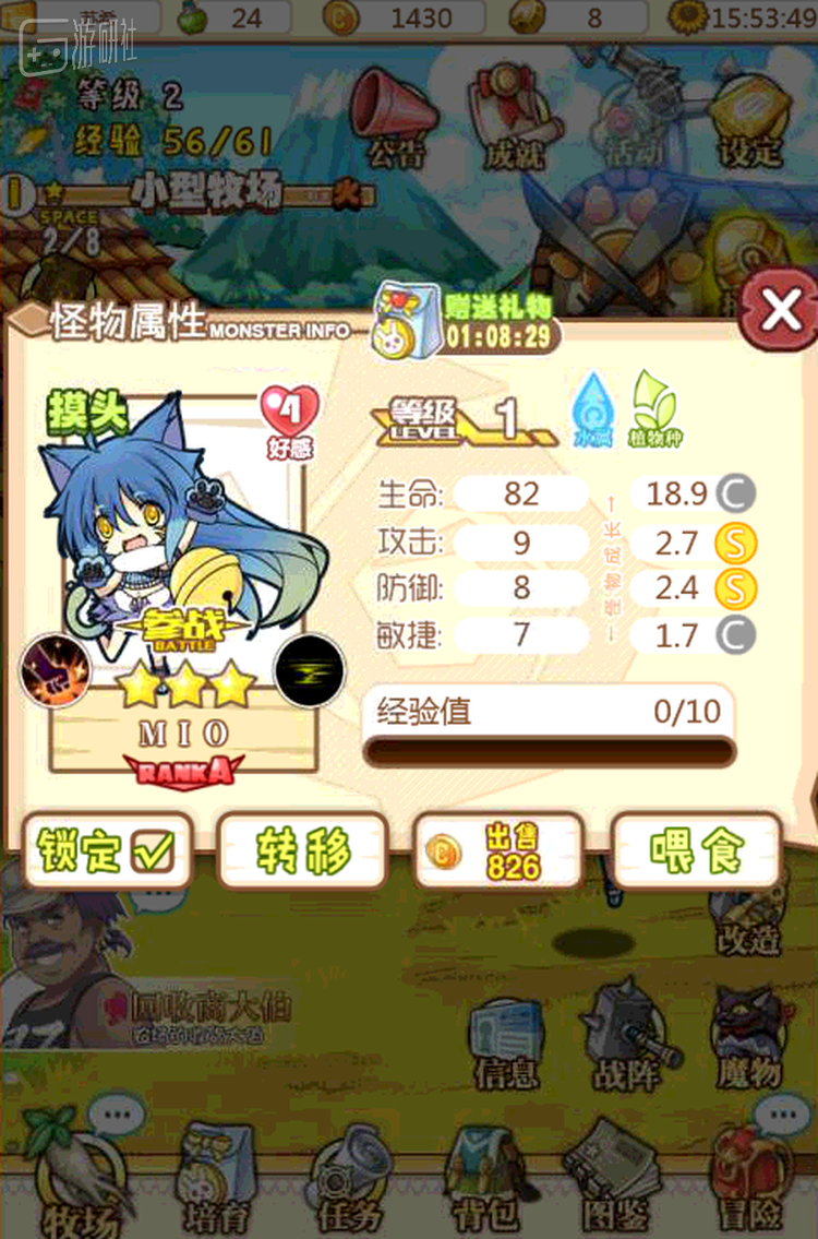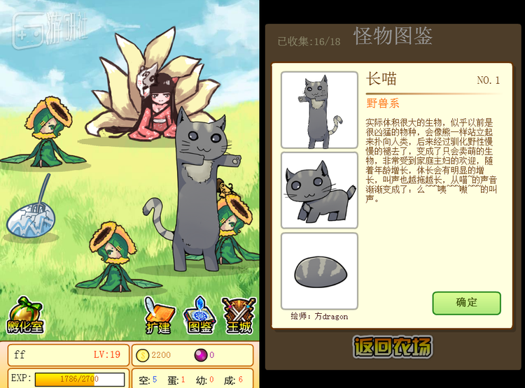 DEMO的玩法设计也比较简单,世界地图中会随着现实时间的改变随机出现NPC,NPC又会随机出售一些魔物蛋,玩家利用初始资金购买魔物蛋即可进行培育,并通过出售成年后的魔物赚取金币和获取经验值,随着等级的提升又可以进入到更远的地图中。