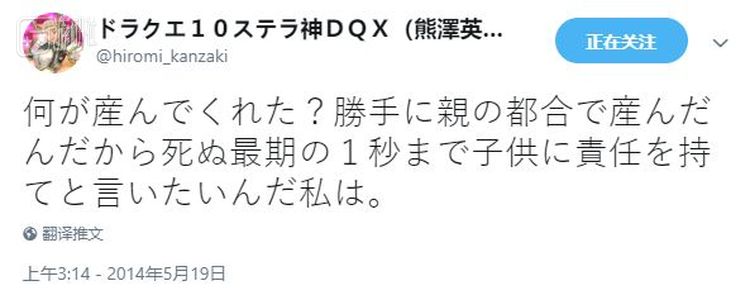 不仅如此,由于父亲熊泽英昭说他曾经对家人有过暴力行为,网友们还翻出了他此前的一些过激言论,比如“我仍然对这个愚蠢的母亲怀恨在心”: