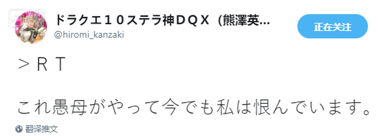 之所以能这么快被认出来,是因为熊泽英一郎的推特用户名尾缀就是自己的名字:ドラクエ10ステラ神DQX(熊澤英一郎)。