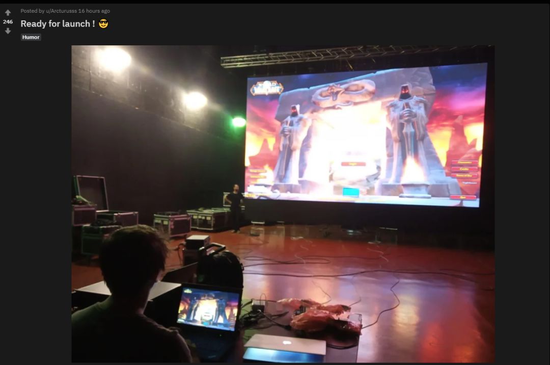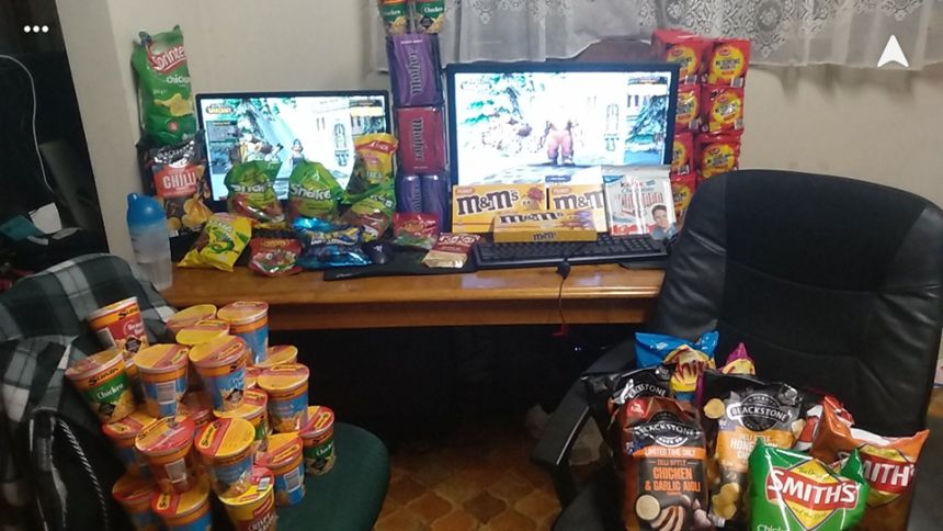 腾出时间后,准备干粮也是一个重要的步骤。在Reddit上,不少外国玩家早已在电脑前用食物摆好阵法,好似不见60级不起身: