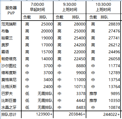 有人分析出各组服务器的排队情况,早上十点过后的排队人数基本上都是以万起步: