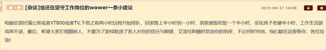 有人也在论坛里发帖,建议大家优先工作和家庭,“不要为了游戏耽误了家人对你的信任与期望”: