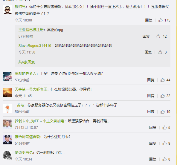 但最倒霉的,还是要数曾经代理过《魔兽世界》的九城。或许是为了全方位“怀旧”,2019年的玩家们又聚到了“第九城市”的官方微博下,骂起了“九城垃圾服务器”: