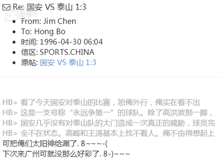 网友可以在游戏区讨论“国产RPG系统的缺憾”,也可以在硬件区与人交流“华硕主板TX97E真伪辨别方法”,甚至在体育板块,还可以看到来自1996年“永远争第一”的北京国安足球队。