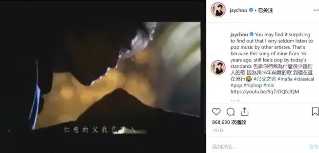 歌曲本身的素质,变成了最不重要的那部分。周董年初自己也发了一条instagram动态,“告诉你们我为什么很少听别人的歌 因为我16年前写的歌到现在还在流行”——这大概也能用来解释为什么他依然是那个“顶级流量”。