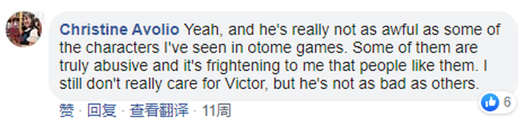 “是的,不过他其实没其他乙女游戏里的那么糟糕。有些角色真的非常烂,而且有人会喜欢他们这件事真的吓到我了。我的确不怎么关注李泽言,但也没觉得他那么坏就是了”