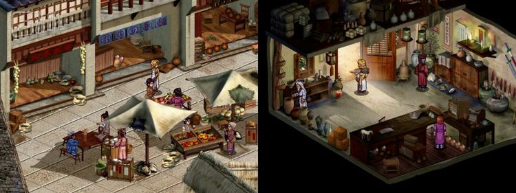 室内的物件数量之多,细节之丰富,几个城镇的武器店、杂物店、客栈、药店给人的感觉完全不同。
