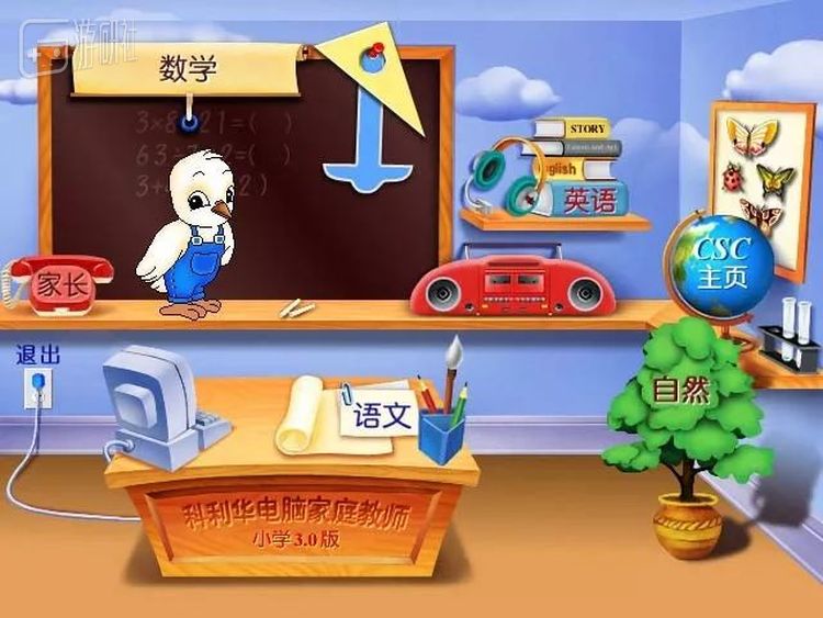 后来家里也有了电脑,爸妈在学校老师的推荐下买了一套学习软件《科利华电脑家庭教师》,好像一套要几百块钱,对当时的家里来说还挺贵的。内含数学、语文、英语、自然等科目的课程讲解和练习。这个软件的教学效果如何我不好说,当时我都是把这个学习软件当成游戏机来玩,软件自带了几个小游戏,用寓教于乐的方式,传授给学生知识。玩这里面的游戏,不会遭到爸妈的反对。