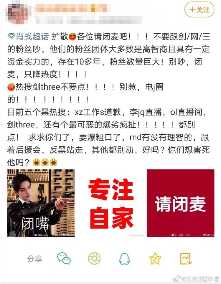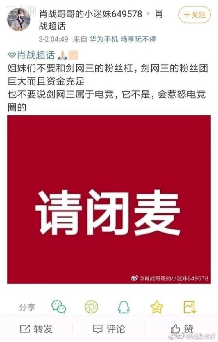 没成想嗅到血腥气息的“肖战粉丝团·剑三战事分舵”第一波大规模反击策略就是——
