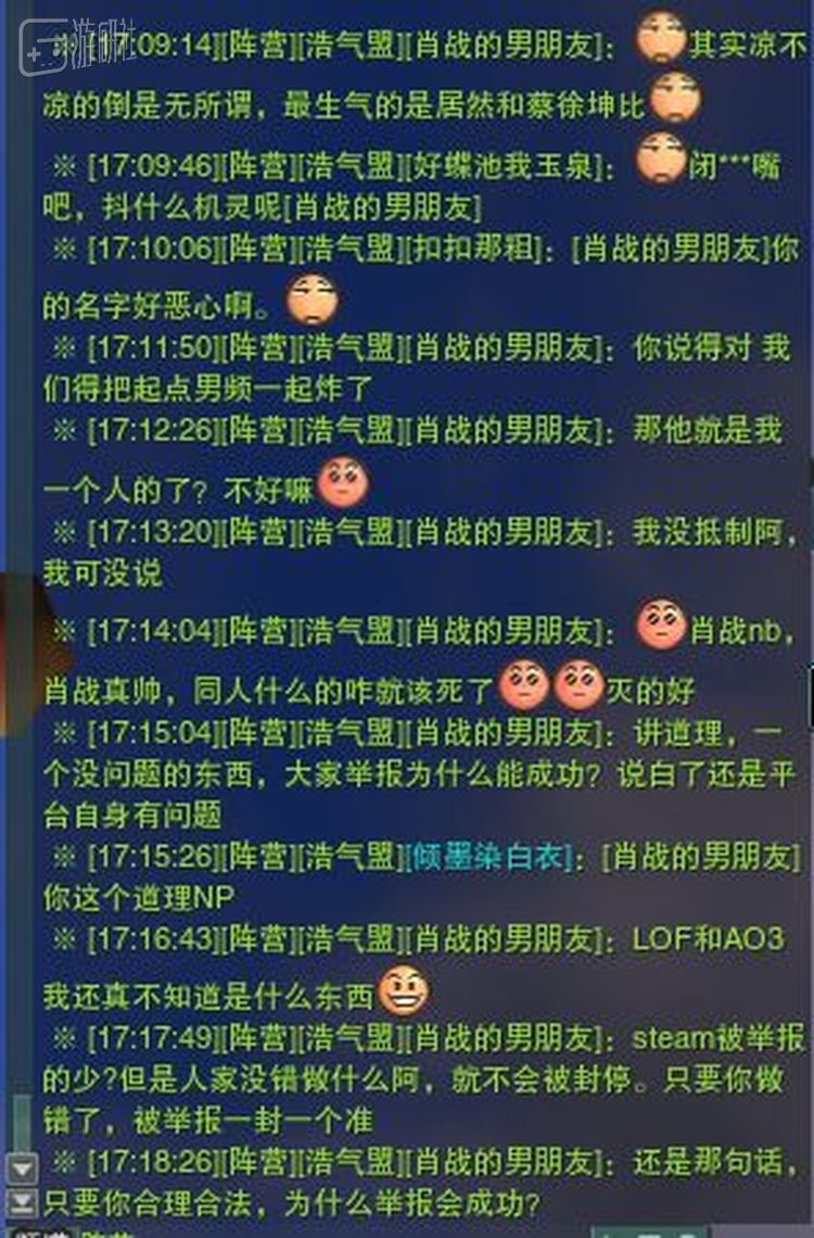 事发3月1日晚,肖战粉丝与各方疯狂对线的战火烧到了剑网三的游戏中,其中一位肖战粉丝在游戏里为爱豆喊冤,里面夹杂着诸如“平台自身有问题”等大量奇怪言论:
