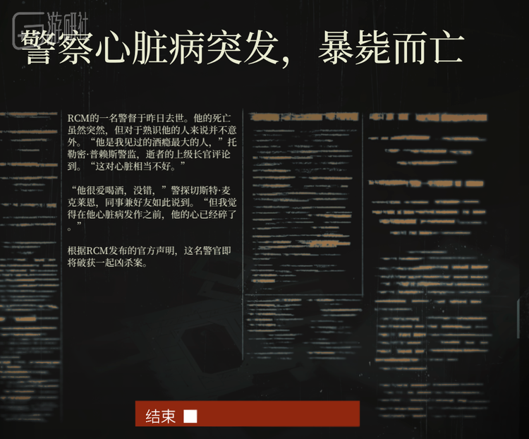 在游戏进行到第三天,我发现了一具酗酒后死亡的男人尸体。我找到了他的妻子,却在门前踟躇:怎么样才能礼貌地告知一个人其爱人的死讯?我不知道,而曷城警探的回答很简单。