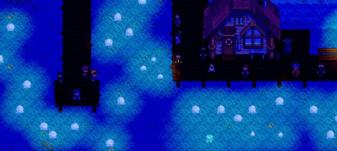 梦幻与现实交错。星露谷美好的水母节结束后,第17天,他分文不赚,自己画了个JOJO里的忧郁蓝调,大概也表露了他的心情。