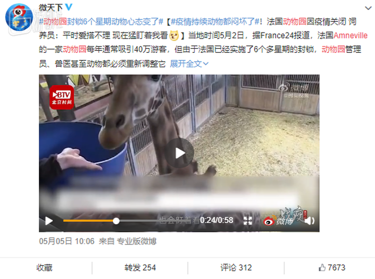 但是最近动物园里的动物也犯难了,因为疫情造成的隔离,它们几乎见不到除了饲养员之外的其他人类。