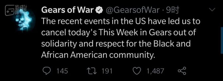 《战争机器》也宣布取消本周的常规活动,以表示对黑人群体的尊重。