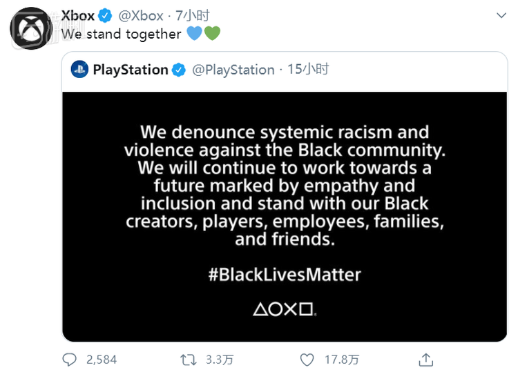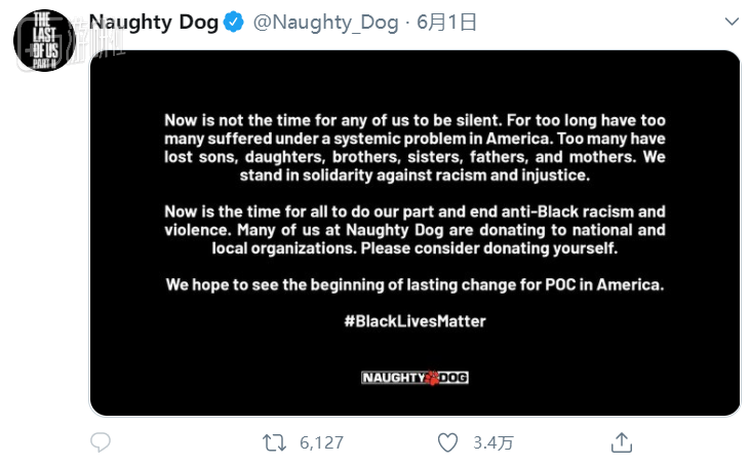 这几天很多商业公司开始针对抗议活动进行了表态,发布声明反对种族歧视,支持Black Lives Matter的活动,其中也又有不少著名游戏公司。