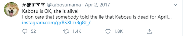 这下Kabosu主人终于忍无可忍了,她在Twitter上公开辟谣,说Kabosu还活的好好的,让大家放心。