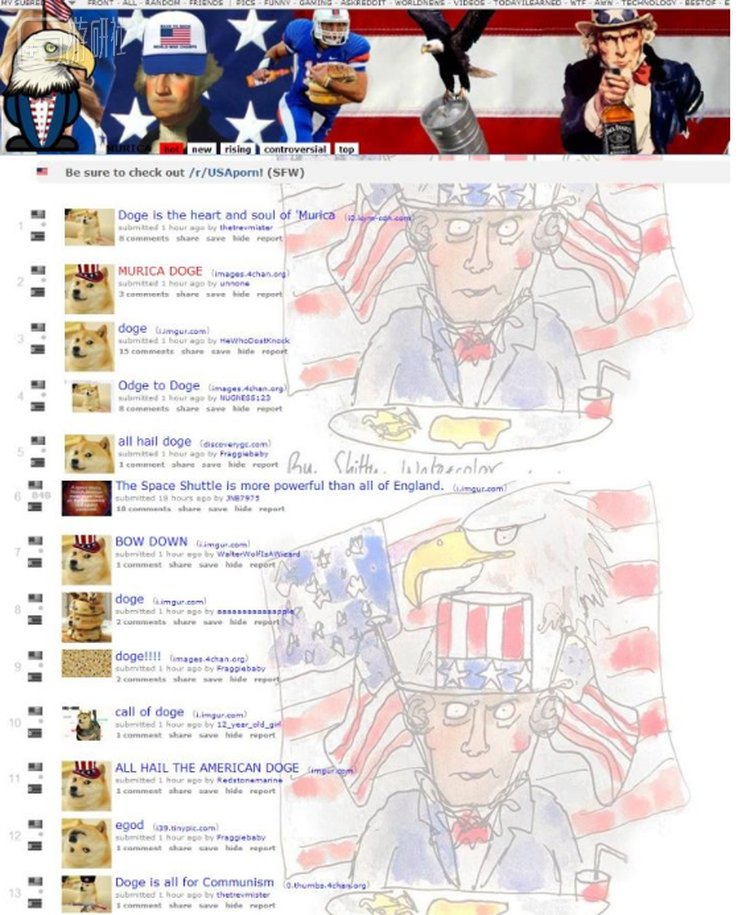 “Murica”本身是“美利坚”的一种带口音的读法,Murica版块用户并没有特定的讨论方向,过去大体是Reddit上美国极端爱国主义者的聚集地,如今的内容类型则更繁杂。不难想象,在这种地方爆吧,必然会引发互联网世界的血雨腥风。