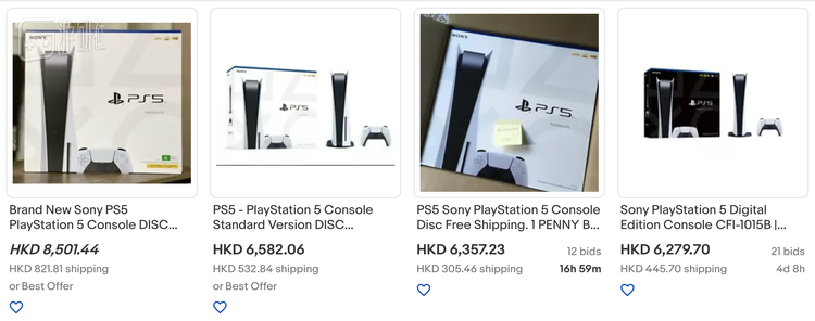在eBay等网购平台上,一台新PS5已经被黄牛炒到了原价的1.6倍及以上。