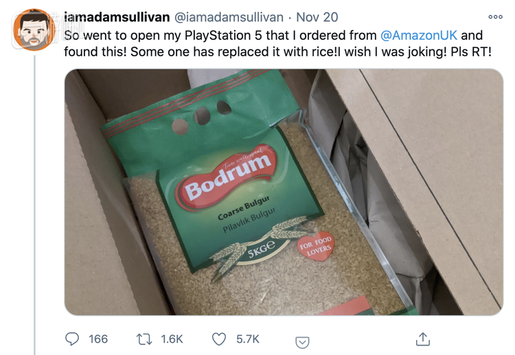 这些受害者基本上都是从亚马逊上订购的PS5,而他们的遭遇也和BEX差不多:尽管自己订的是PS5,但收到的东西,却和PS5沾不上什么边。