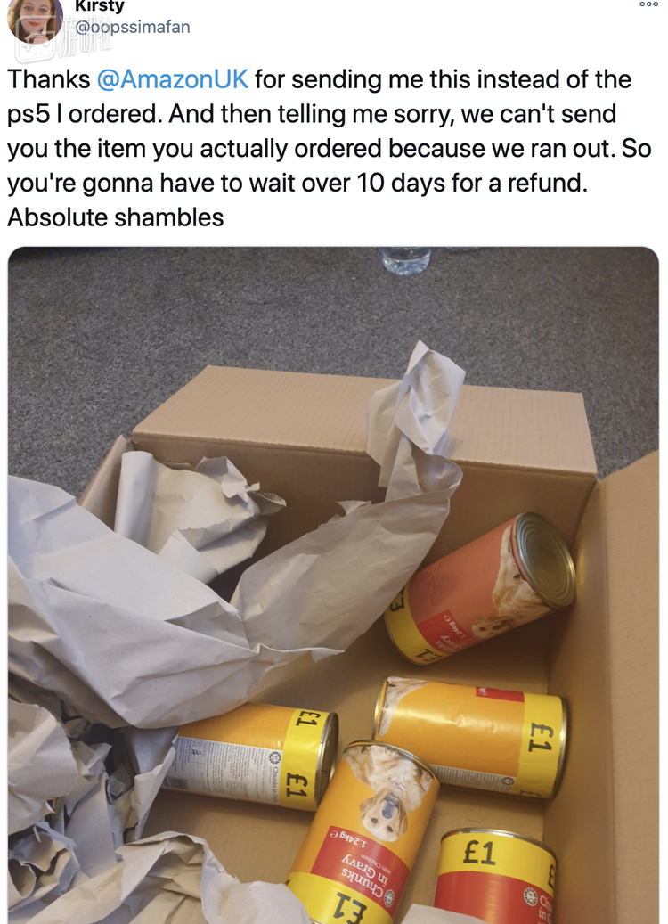 期望换来了如此之大的失望,受害者们怨气冲天,怒喷亚马逊。而亚马逊则回应,他们正在着手调查事实的真相。虽说如此,这些受害者们却很难得到应有的赔偿。因为亚马逊方表示,目前只能给他们做到退货——亚马逊自己也没有PS5的存货了。