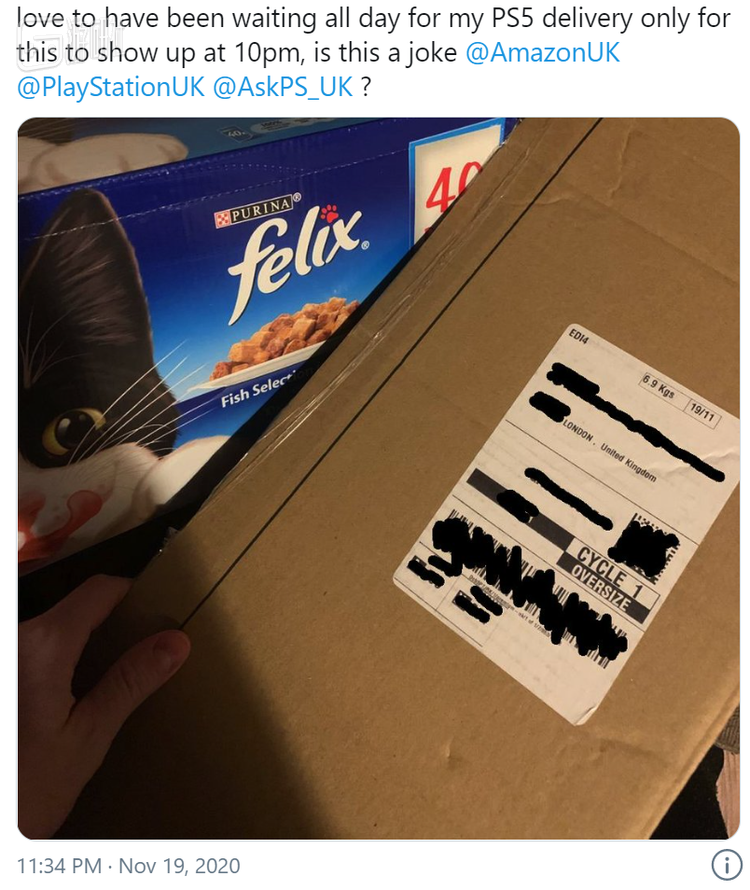 先是日本“黄牛”起头,把PS5挂出九万日元起步的高价(原价4万到5万日元),其他地区的转卖价格也纷纷走高,硬生生把游戏主机变成了投资产品。再是欧美地区出现针对PS5的大规模神秘调包事件,从亚马逊包裹里拆出猫粮和空气炸锅的玩家们叫苦不迭。