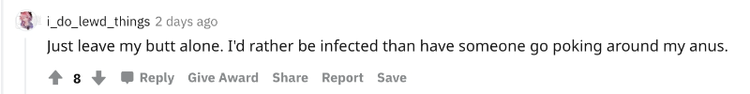 但显然还有很多人抗拒这个检测方式,还有人表示“宁愿感染都不愿自己的屁股被戳“。