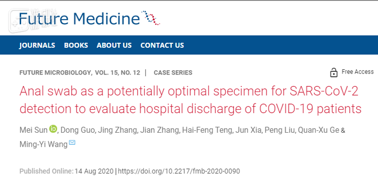 随着更多的研究人员投入到对胃肠道新冠病毒的研究中,等到8月份,一篇以“肛拭子可能是新冠病毒的最好检测方法”为主题的论文被发表到《Future Medicine》上。